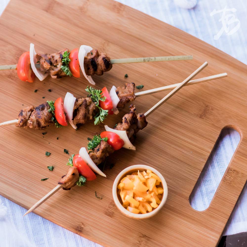 Built with Beautiful Flat-Grain BambooClearly see the natural beauty in bamboo with the flat-grain construction of each cutting board. Made of organically-grown Moso bamboo. Each board is 3/8 of an inch thick to provide a sturdy, durable cutting surface. |